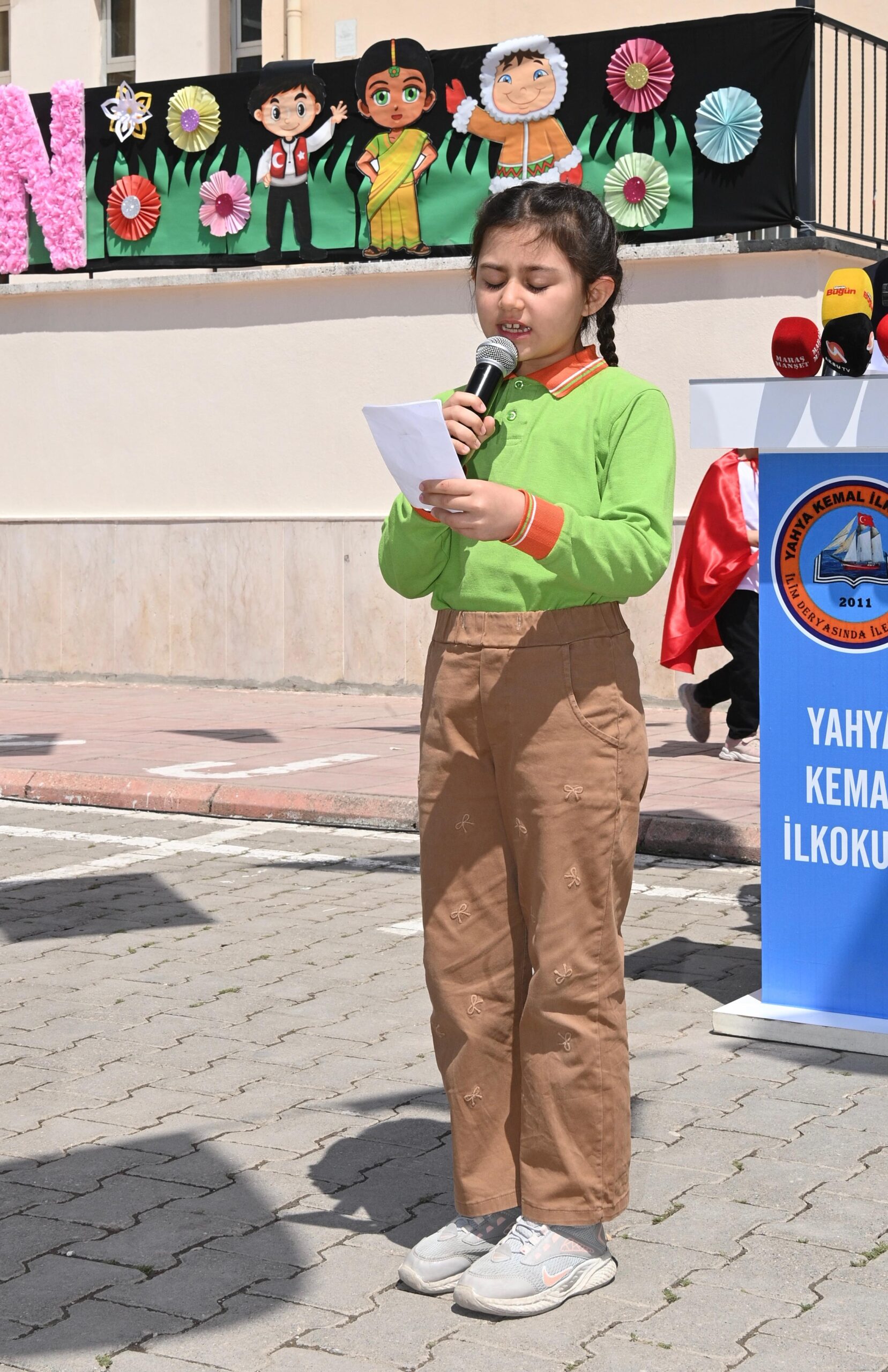 23 Nisan Ulusal Egemenlik ve Çocuk Bayramı, Dulkadiroğlu Yahya Kemal İlkokulu’nda geniş katılımla düzenlenen programla kutlandı. Okul bahçesinde gerçekleştirilen programa; Vali Mükerrem Ünlüer, Garnizon Komutanı Tuğgeneral Mahmut Sert, Büyükşehir Belediye Başkanı Fırat Görgel, KSÜ Rektörü Prof. Dr. İbrahim Taner Okumuş, KİÜ Rektörü Prof. Dr. İsmail Bakan, AK Parti İl Başkanı Muhammed Burak Gül, MHP İl Başkanı Mansur Metehan, kaymakamlar, ilçe belediye başkanları, kamu kurum temsilcileri ve çok sayıda vatandaş katıldı.Program, saygı duruşu ve İstiklal Marşı’nın okunmasıyla başladı. Törende ayrıca, geçtiğimiz günlerde Ayser Çalık Ortaokulu’nda yaşanan menfur saldırıda hayatını kaybeden Ayla öğretmen ve öğrenciler unutulmadı. Kur’an-ı Kerim tilaveti ve dualarla anılan kayıplar, törende duygusal anların yaşanmasına neden oldu. Günün anlam ve önemine ilişkin yapılan konuşmalarda, çocukların geleceğin teminatı olduğu vurgulanırken, milli egemenliğin ve bağımsızlığın önemi bir kez daha hatırlatıldı. Öğrenciler tarafından okunan şiirler büyük beğeni toplarken program, öğrencilerin sergilediği renkli performanslar ve gösterilerle sona erdi.