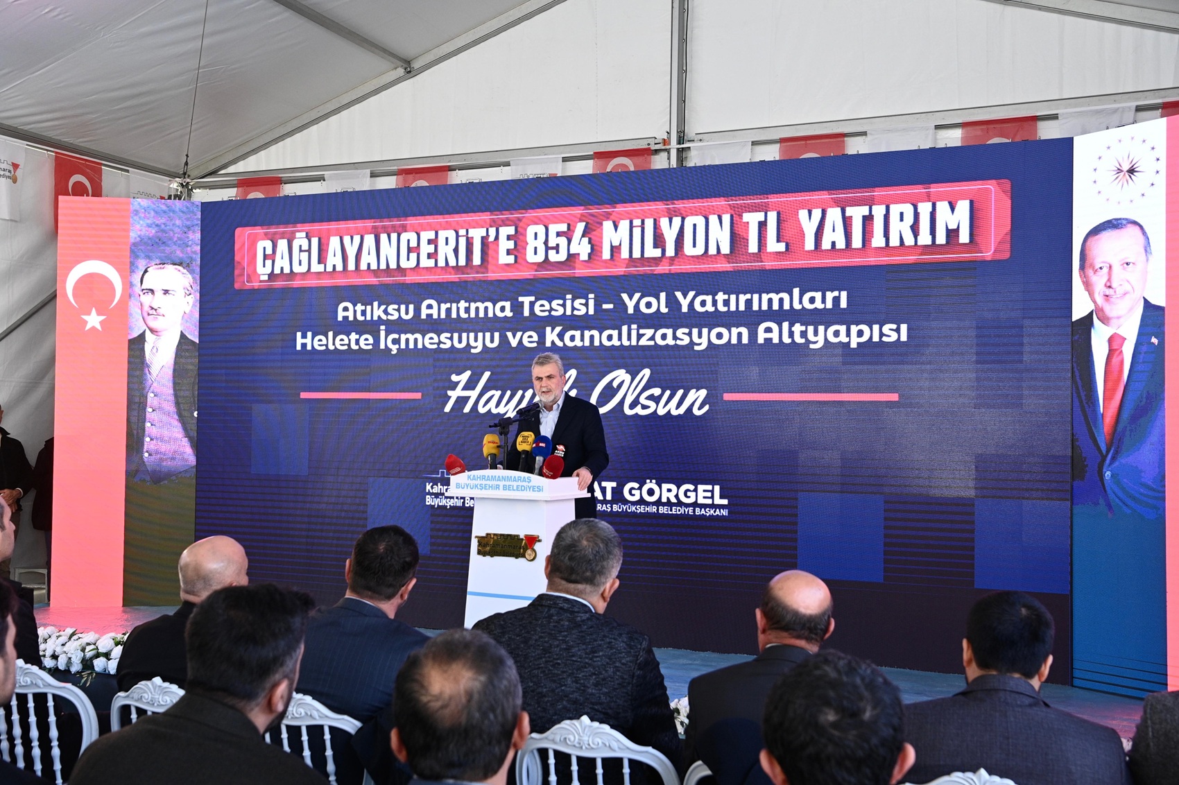 Açılış töreninde konuşan Büyükşehir Belediye Başkanı Fırat Görgel, “Göreve geldiğimiz günden bu yana geçen 23 aylık süreçte Çağlayancerit’imiz için geniş kapsamlı bir hizmet seferberliği yürüttük. Artık toparlanma sürecinin son aşamalarına yaklaşırken kalıcı yatırımlarımızı bir bir hayata geçiriyoruz. Bugüne kadar gerçekleştirdiğimiz yatırımların tutarı 854 Milyon TL. İlçemiz için önem arz eden Helete İçmesuyu ve Kanalizasyon Projesi kapsamında 41 km içmesuyu, 31 km kanalizasyon ve 1 depo inşaatını gerçekleştirdik. Ayrıca 80 km içmesuyu, 30 km kanalizasyon, 13 depo ve 9 sondaj çalışmasıyla ilçemizin altyapısını yeniledik. Bu yatırımlar altyapıda sessiz ama hayati bir devrimdir. Sadece altyapıya yaptığımız yatırım tutarı 733 Milyon TL. Bu da ilçemizin 50-60 yıllık altyapı geleceğini garanti altına almış olmak demek” dedi.