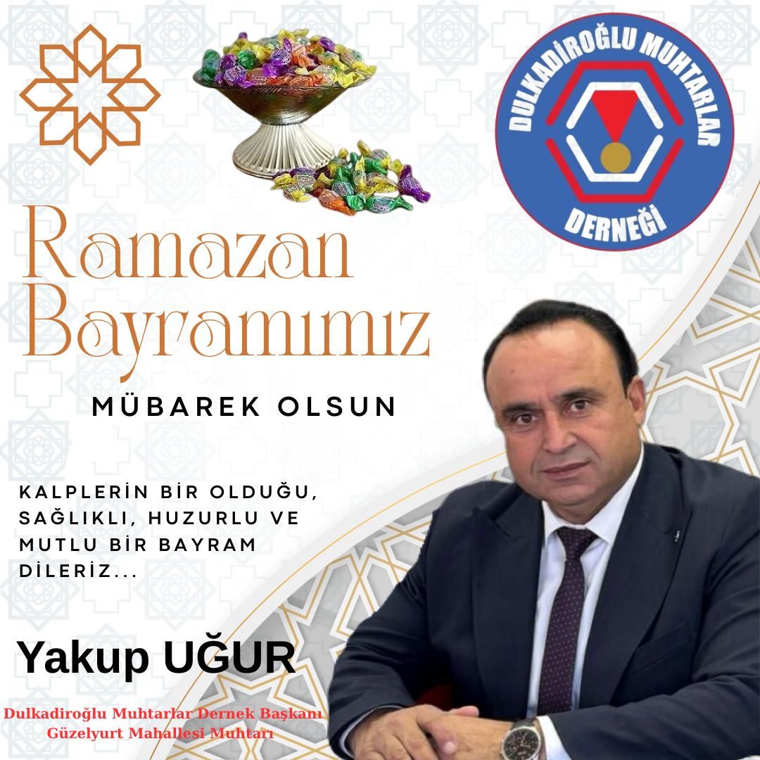 Kahramanmaraş’ın Dulkadiroğlu ilçesinde Muhtarlar Derneği Başkanı Yakup Uğur, Ramazan Bayramı dolayısıyla bir kutlama mesajı yayımladı. Bayramların birlik, beraberlik ve dayanışma duygularını güçlendiren özel günler olduğuna dikkat çeken Uğur, tüm vatandaşların bayramını tebrik etti.