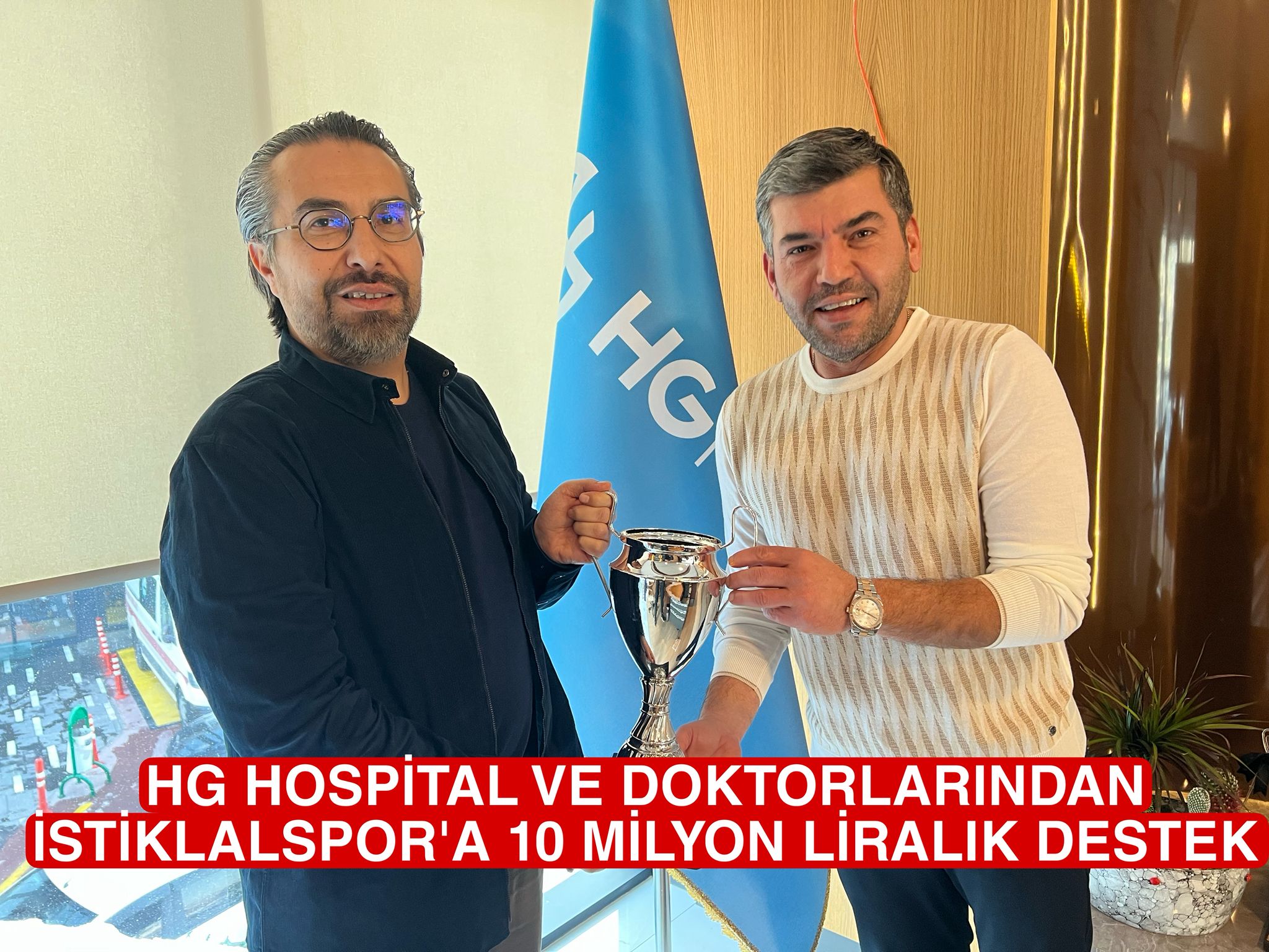 İstiklalspor Kulüp Başkanı Ahmet Gaffar Akarca, HG Holding Yönetim Kurulu Başkanı Uzm. Dr. Halil Gürsoy’u ziyaret ederek desteklerinden dolayı teşekkür etti. Akarca, geçtiğimiz sezon HG Hospital’ın verdiği katkılar nedeniyle Gürsoy’a birebir aynısı yaptırılan şampiyonluk kupasını takdim etti.