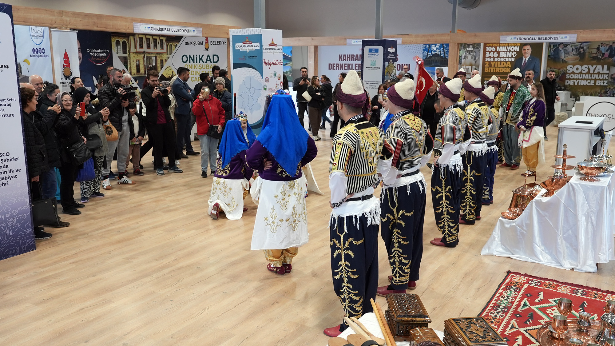 Diğer yandan organizasyonda yalnızca gastronomi değil, şehrin asırlara dayanan el sanatları da ön plana çıkarıldı. Yemeniden sim sırmaya, ceviz oyma sandıklardan bakır mutfak eşyalarına kadar pek çok geleneksel ürün sergilenirken, ustaların canlı performansları da ziyaretçilerin beğenisini topladı. El emeği göz nuru ürünler hem kültürel mirasın yaşatılması hem de gelecek nesillere aktarılması açısından büyük önem taşıyor. Etkinliğin ilk gününde sahne alan halk oyunları ekipleri de izleyenlere görsel bir şölen sundu. Kahramanmaraş’ın yöresel ezgileri eşliğinde sergilenen oyunlar, alanda bulunan vatandaşlara keyifli anlar yaşatırken, kültürel birlikteliğin en güzel örneklerinden biri olarak öne çıktı.