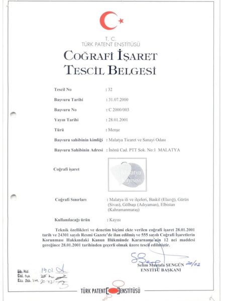 “Bugün Sanayi ve Teknoloji Bakanımız Sayın Fatih Kacır ile çok önemli bir konuyu görüştük. Türk Patent ve Marka Kurumu tarafından tescil edilen Malatya Kayısısı coğrafi işaret belgesi, yıllardır Elbistan’ı da bu sınırlar içine alıyor.