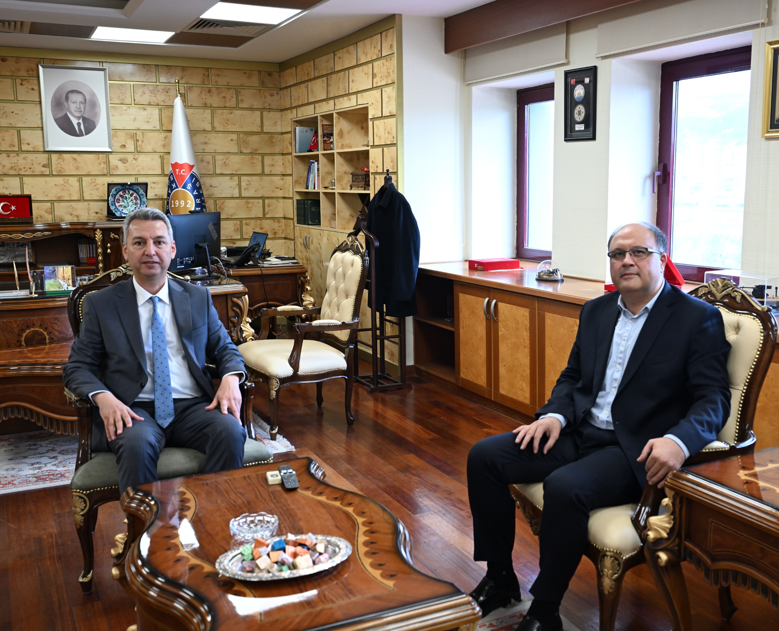 Rektör Okumuş ise nazik ziyaretleri ve iyi dilekleri dolayısıyla Demirci ve beraberindeki heyete teşekkür ederek, üniversite ile sağlık camiası arasındaki güçlü bağların önemine dikkat çekti. KSÜ’nün, sağlık alanında yürütülen çalışmalarda tüm paydaşlarla iş birliği içinde hareket etmeye devam edeceğini ifade etti.