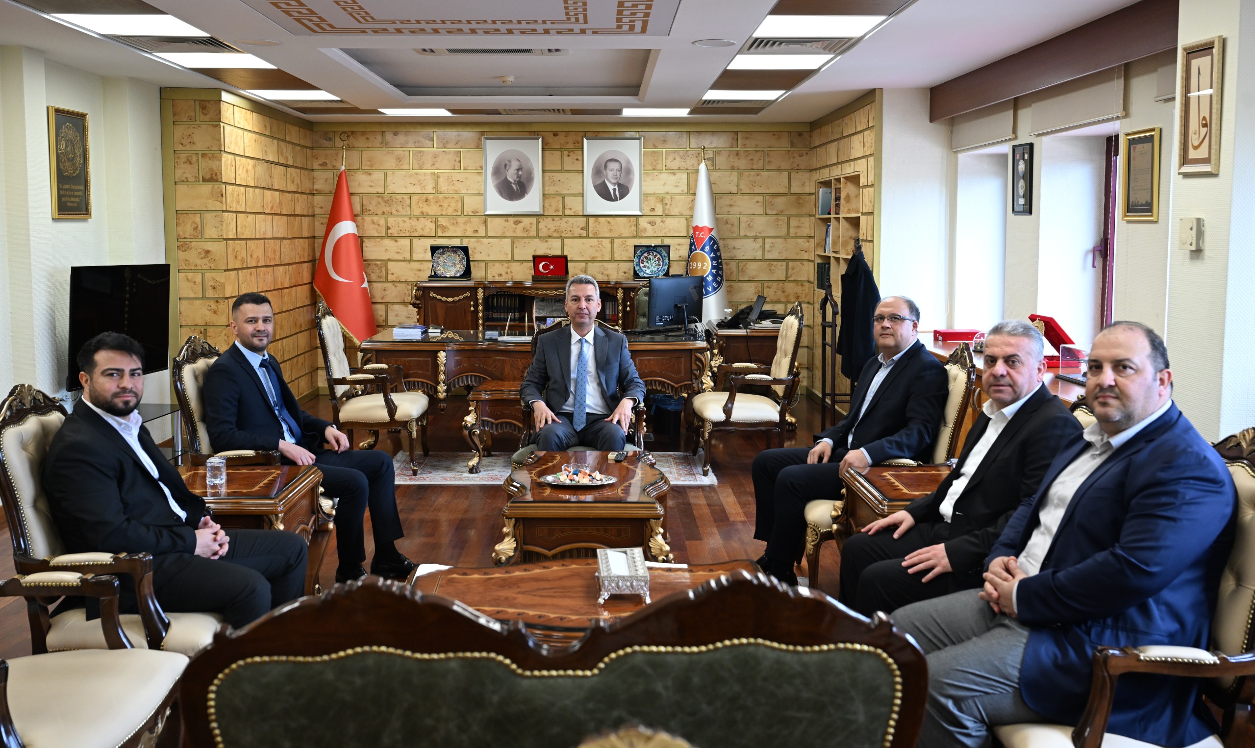 Kahramanmaraş Sütçü İmam Üniversitesi Rektörlük makamında gerçekleşen ziyarette, üniversite ile sağlık çalışanları arasındaki iş birliği ve ortak çalışmalar üzerine görüş alışverişinde bulunuldu.