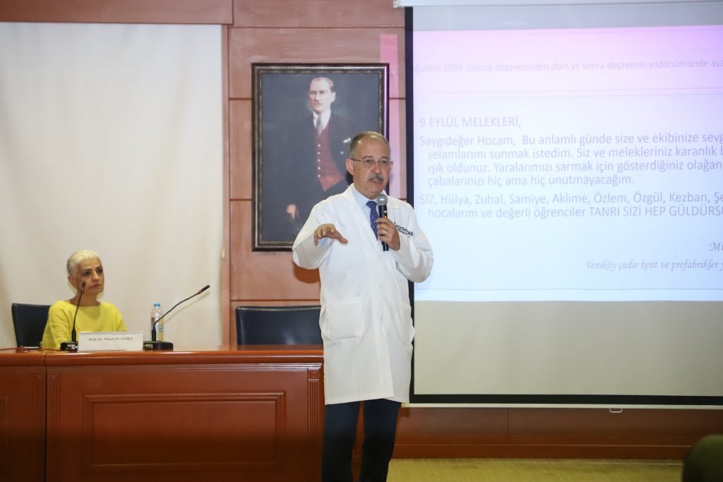 SBF Dekanı Prof. Dr. Türkan Pasinlioğlu ise “Ülkemiz ve bölgemizin deprem kuşağında olduğunu düşünürsek depremler hayatımızda hep yer alacaktır. Bu nedenle depremle yaşamayı öğrenmeli ve gerekli tedbirleri almalıyız” dedi. Şubat ayında yaşanan deprem felaketinin herkesi derinden etkilediğini dile getiren Prof. Dr. Pasinlioğlu, hemşirelerin hem yaşanan pandemi döneminde hem de deprem felaketinde görevlerini en iyi şekilde yerine getirdiklerine dikkat çekti. Hemşirelerin yaşanan zor günlerde özverili çalışmalarıyla dikkatleri üzerlerine çektiğini ifade eden Prof. Dr. Pasinlioğlu, “Alanında uzman birbirinden değerli konuşmacıların yer aldığı sempozyumun gerçekleştirilmesinde emeği geçen, katkı sunan ve katılan herkese teşekkür ederim” ifadelerini kullandı.