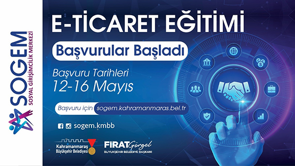 Avrupa Birliği, Sanayi ve Teknoloji Bakanlığı ile Doğu Akdeniz Kalkınma Ajansı iş birliğiyle Kahramanmaraş Büyükşehir Belediyesi öncülüğünde şehre kazandırılan Sosyal Girişimcilik Merkezi (SOGEM), girişimciler için yeni bir eğitim programını daha hayata geçiriyor. Şehirde sosyal girişimciliğin yaygınlaştırılması, yerel kalkınmanın desteklenmesi ve istihdamın artırılması hedefleri doğrultusunda faaliyetlerini sürdüren SOGEM, ikinci eğitim programı kapsamında E-Ticaret Eğitimi düzenliyor.
